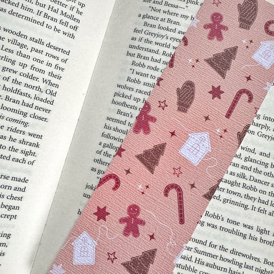 Christmas Bookish linen bookmark, Gingerbread house and Christmas tree bookmark