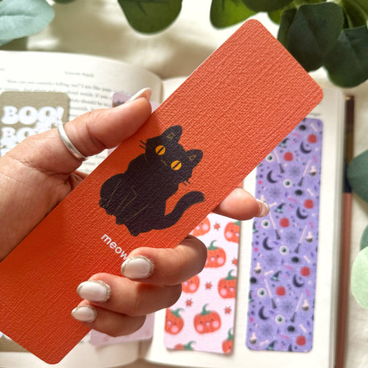 Cat Meow Linen Bookmark, Halloween Bookmark