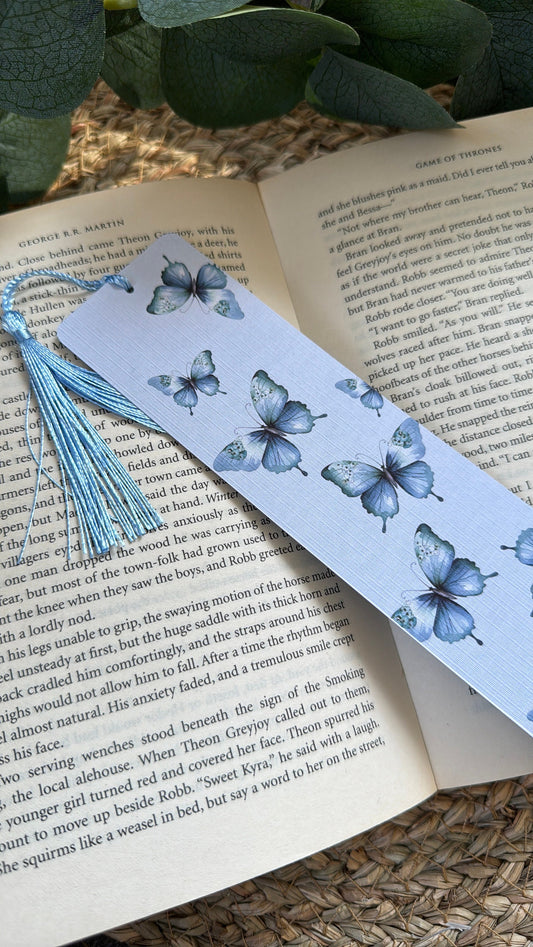 Butterfly Bookmark for Book Lovers two sided , Blue Butterfly Bookmark, Linen Bookmark, Booklover Gifts,Teachers Gift, Bookish Gift