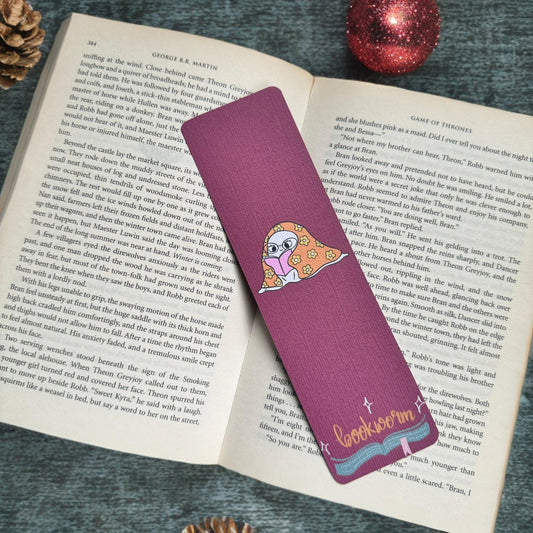 Christmas Holidays Bookworm Bookmark for Book Lovers two sided ,Ghostie Bookmark, Linen Bookmark, Booklover Gifts, stocking filler