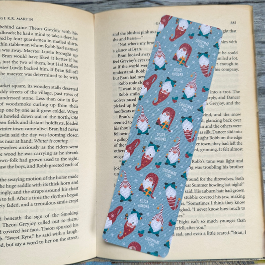 Christmas Gnome linen bookmark, Gnomes Holiday Cozy Read bookmark