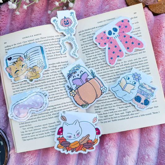Spooky Cute Boo Girly Reading Book Cozy Vibes Magnetic bookmark for book lovers