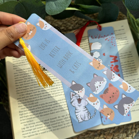 Cat Bookish bookmark, Meow Cat bookmark for Book Lovers , Life is better with books and cat ,Linen Tasseled Bookmark,Cat LoveBookmark