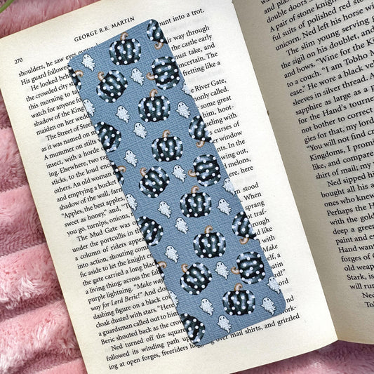 Fall Pumpkin and Ghost Bookmark for Book Lovers double sided ,Autumn Cute Pumpkin Linen Bookmark, Booklover Gift,Spooky treat book lovers