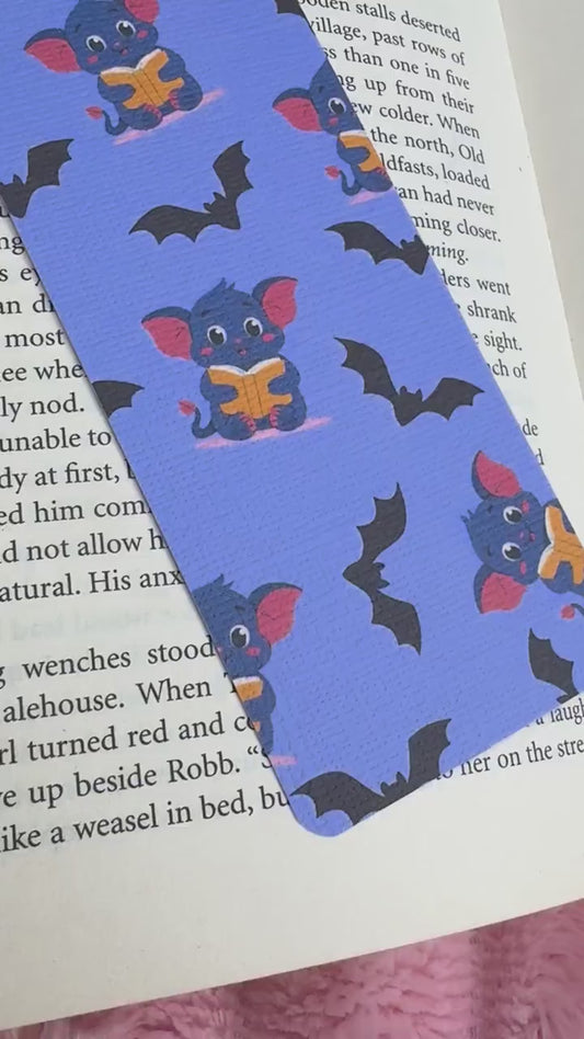 Cute Bat Halloween Bookish Bookmark, Doublesided Linen Tasseled Bookmark, Purple Witchy Bat Bookish Reader Bookmark, Cute Bat reading Books