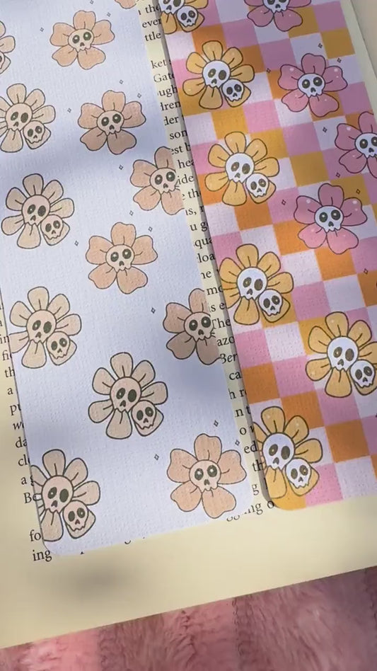 Fall Floral Ghosts Bookmark for Book Lovers double sided ,Autumn Cute Floral Linen Bookmark, Booklover Gift,Cute Pink Checkers bookmarks