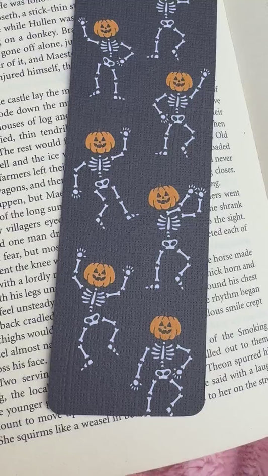 Dancing Ghost Pumpkin Bookmark for Book Lovers double sided ,Autumn Cute Pumpkin Linen Bookmark, Booklover Gift,Spooky Skeleton bookmark