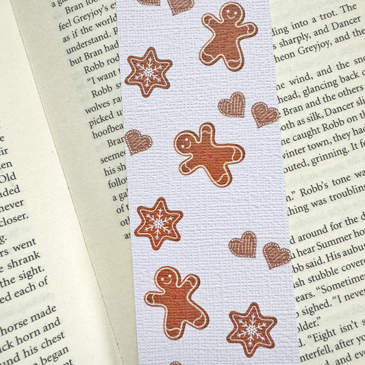 Gingerbread Linen bookmark, Booksmas Cozy Read bookmark