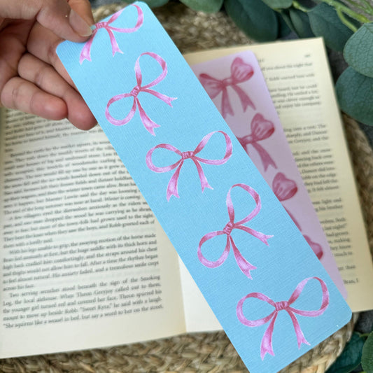 Set of 2 Coquette Bow Bookmark for Book Lovers , set of 2 Linen Bookmark, Aesthetic Girly Bookish Bow bookmark, Pink bows bookmark