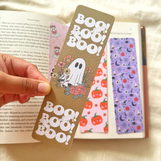 Spooky Boo Bookmark for Book Lovers double sided ,Flowery Ghost,Cute Halloween Linen Bookmark, Booklover Gift,Spooky treat for book lovers