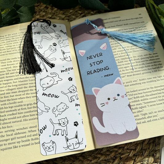 Set of 2 Cat Bookish bookmark, Meow Cat bookmark for Book Lovers , Life is better with books and cat ,Linen Tasseled Bookmark,Cat Love gift