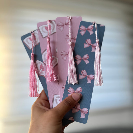 Set of 4 Bow Bookmark for Book Lovers , set of 4 Linen Bookmark, Aesthetic Girly Bookish Bow bookmark, Pink bows bookmark