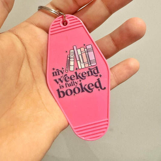 Book lover keychain . My weekend is booked keyring . Motel keyring .Gift for book lover, Bibliophile gift . Bookish Motel Keychain for gift