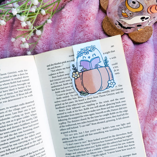 Spooky Cute Boo Girly Reading Book in a Pumpkin Magnetic bookmark for book lovers