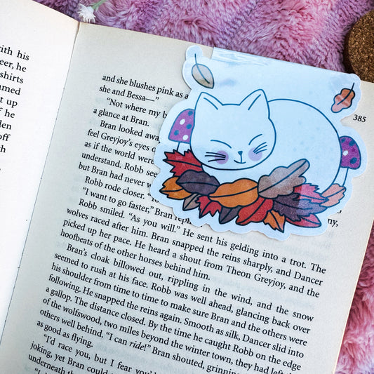 Fall Cozy Cat Sleeping on Fall Leaves Magnetic bookmark for book lovers