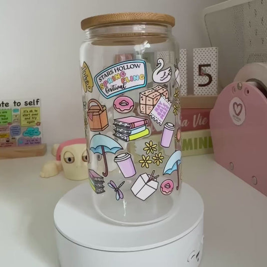 Gilmore girls Stars hollow iced coffee glass with bamboo lid and glass straw, Gilmore girls, gift, Luke’s coffee cup