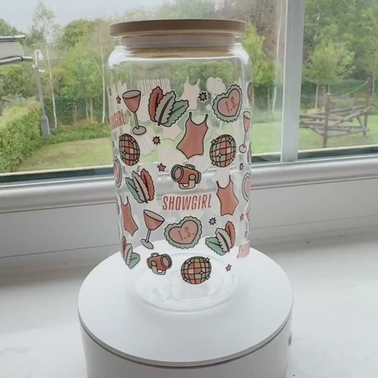 The Life of showgirl Tswift Coffee Can Glass, Swiftie 16oz Beer Can Glass with Bamboo Lid and Glass Straw, Swiftea Cup ,Tswift Gift