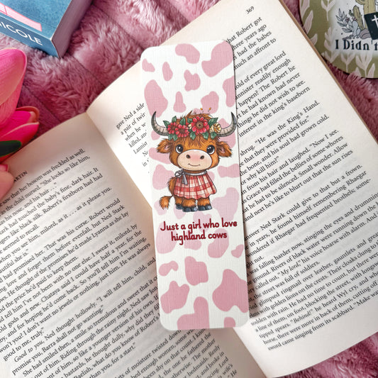 Just a Girl Who Loves Highland Cows Linen Bookmark – Cute Highland Cow Bookish Bookmark