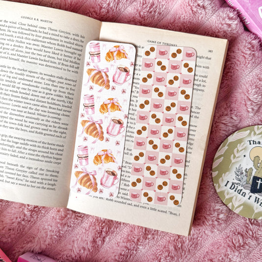 Coffee and Pastry Linen Bookmark Set – Cookies & Croissant Café Bookish Bookmarks (Set of 2)