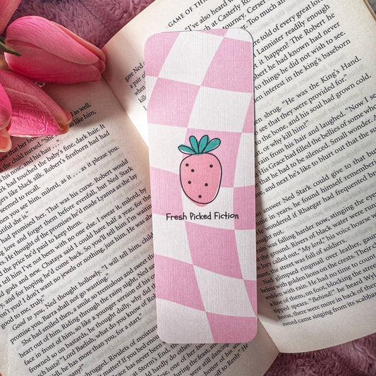 Pink Strawberry Fresh Picked Fiction Linen Bookmark – Summer Fruit Bookish Bookmark for Readers