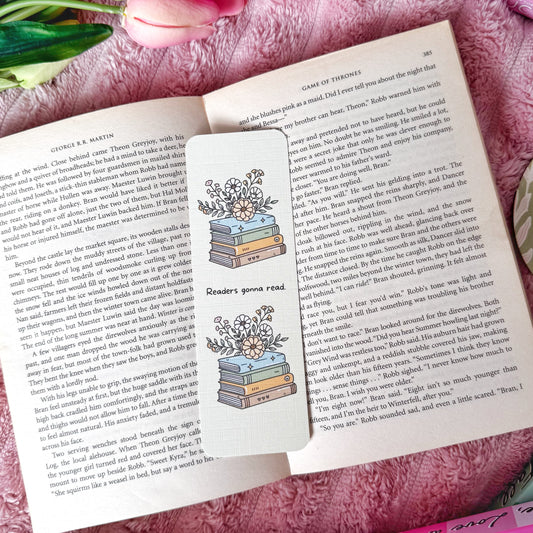 Readers Gonna Read Linen Bookmark – Floral Book Stack Bookish Bookmark for Readers
