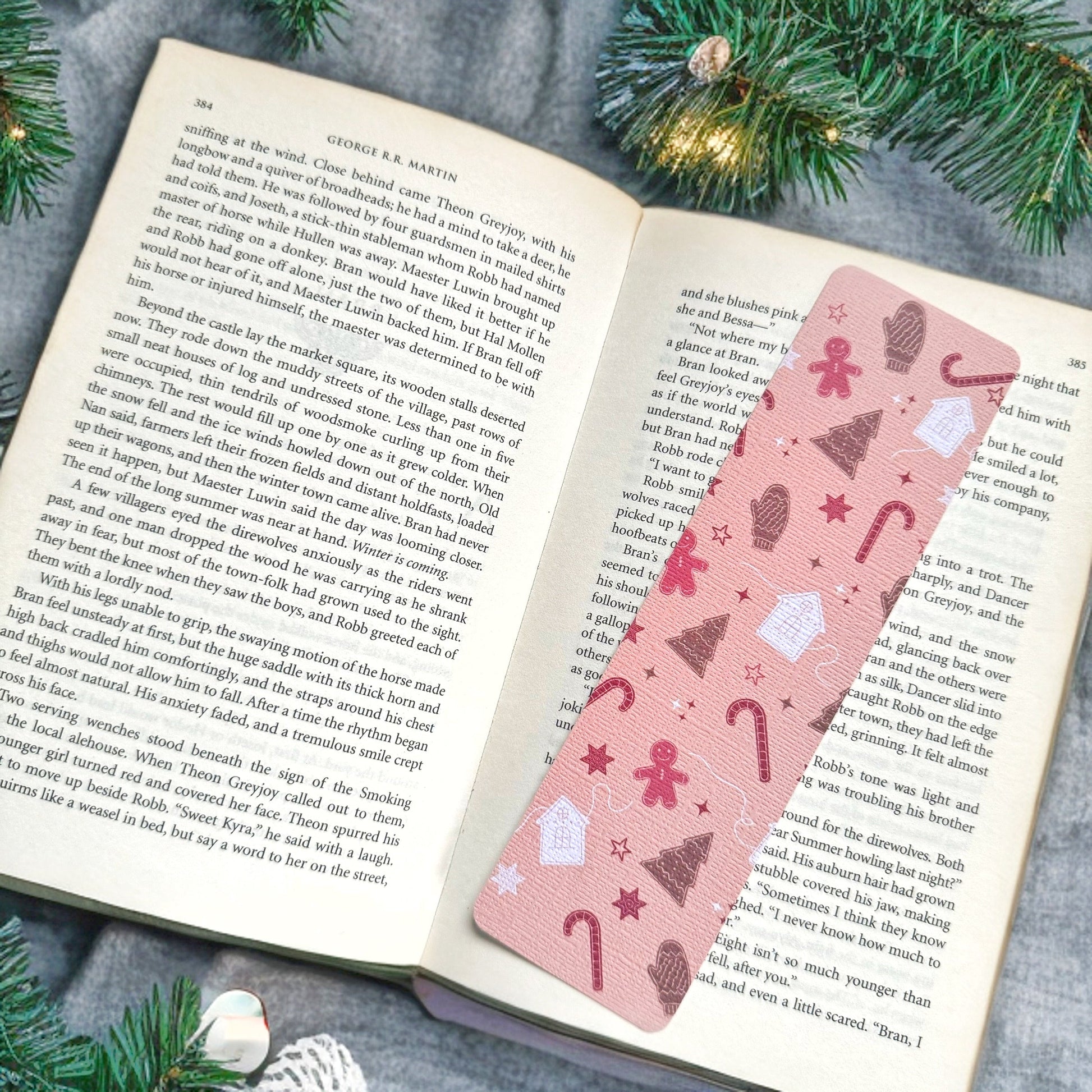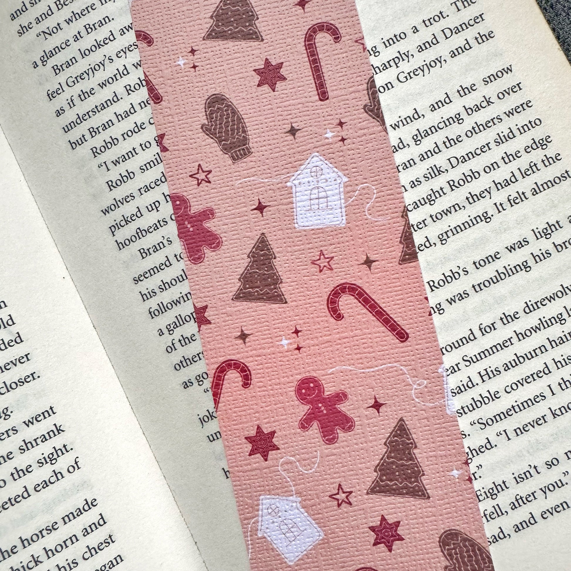 Christmas Bookish linen bookmark, Gingerbread house and Christmas tree bookmark