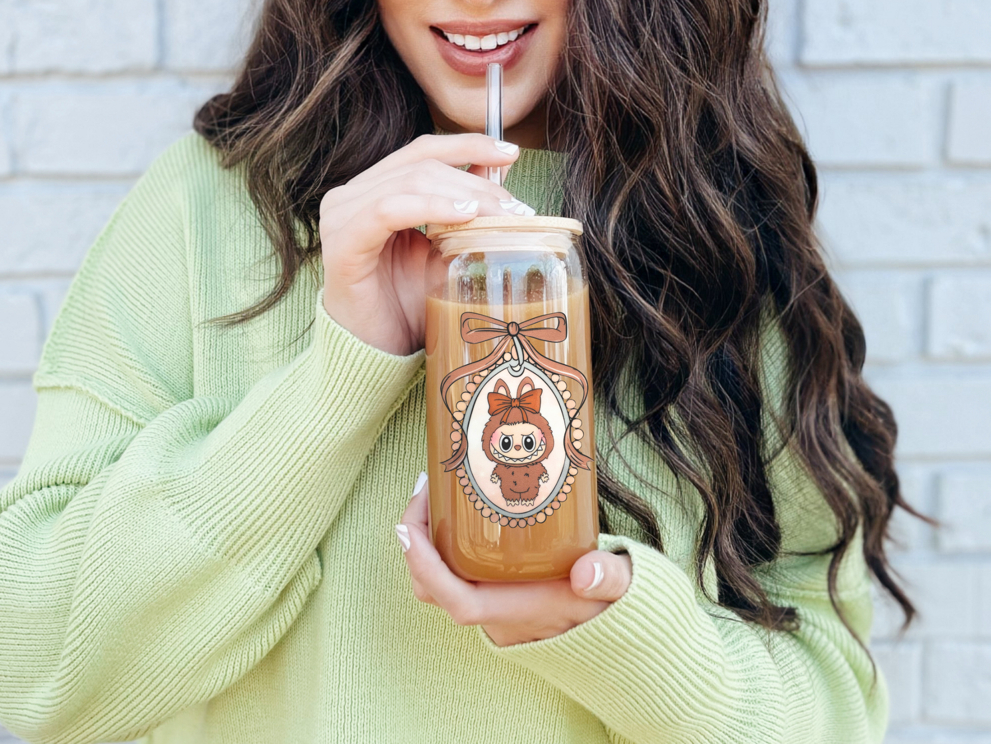 Exclusive Labubu Collection - Labubu Brown Toffee ( BaBa) iced coffee can, Labubu Libbey Glass