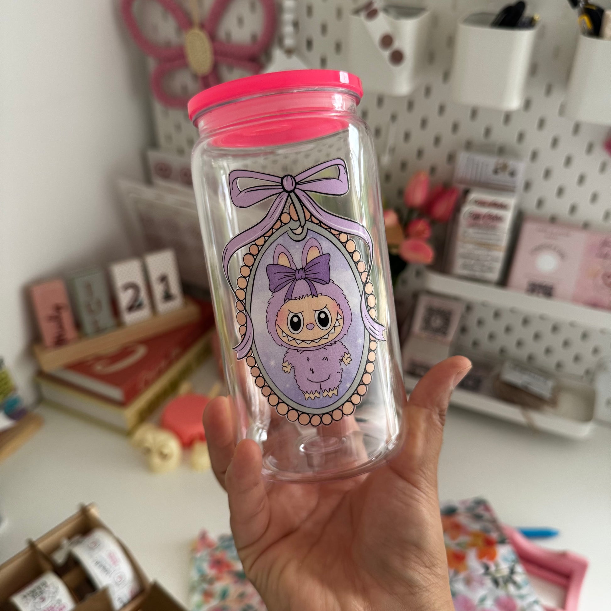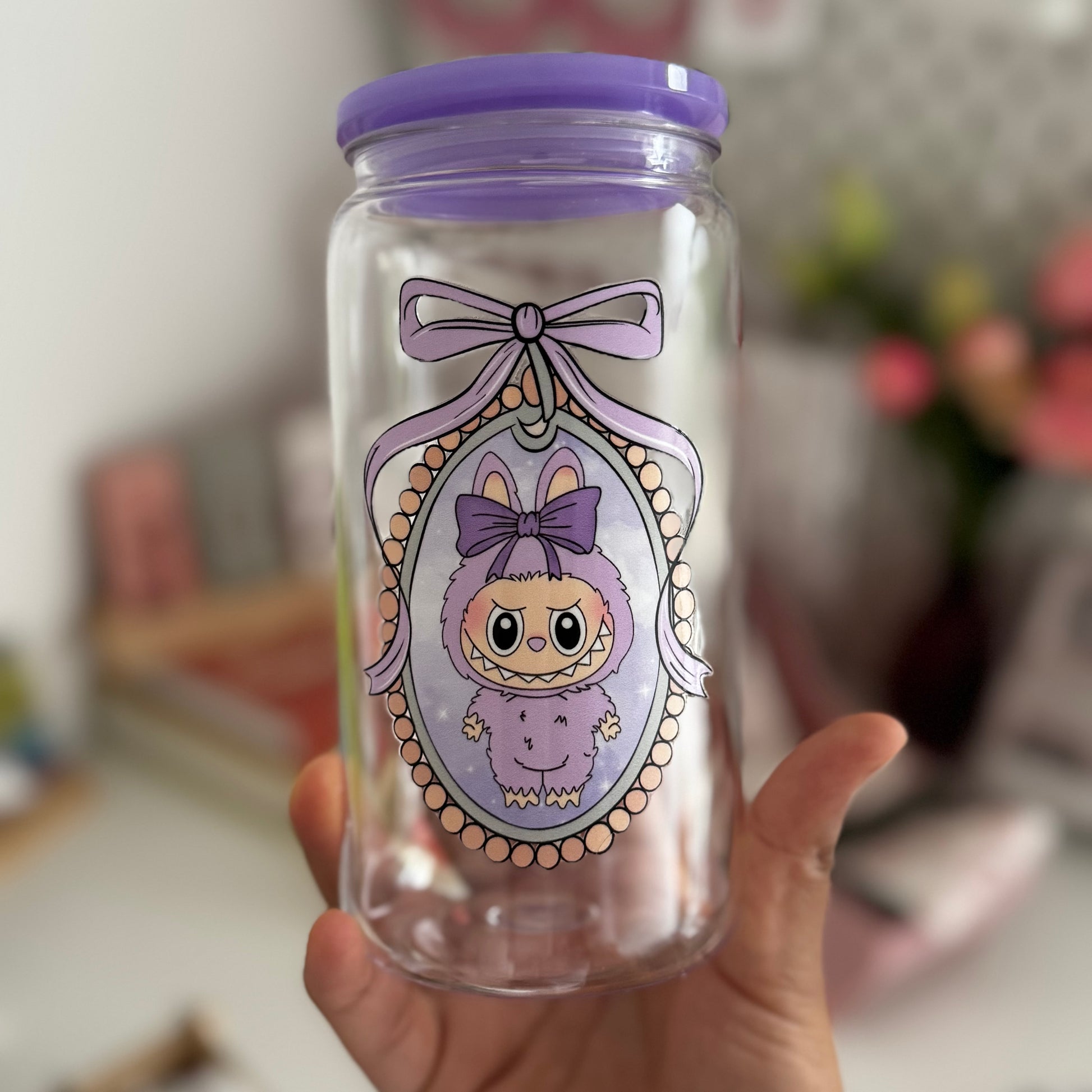 Exclusive Labubu Collection - Labubu Purple ( ZiZi) iced coffee can, Labubu Libbey Glass