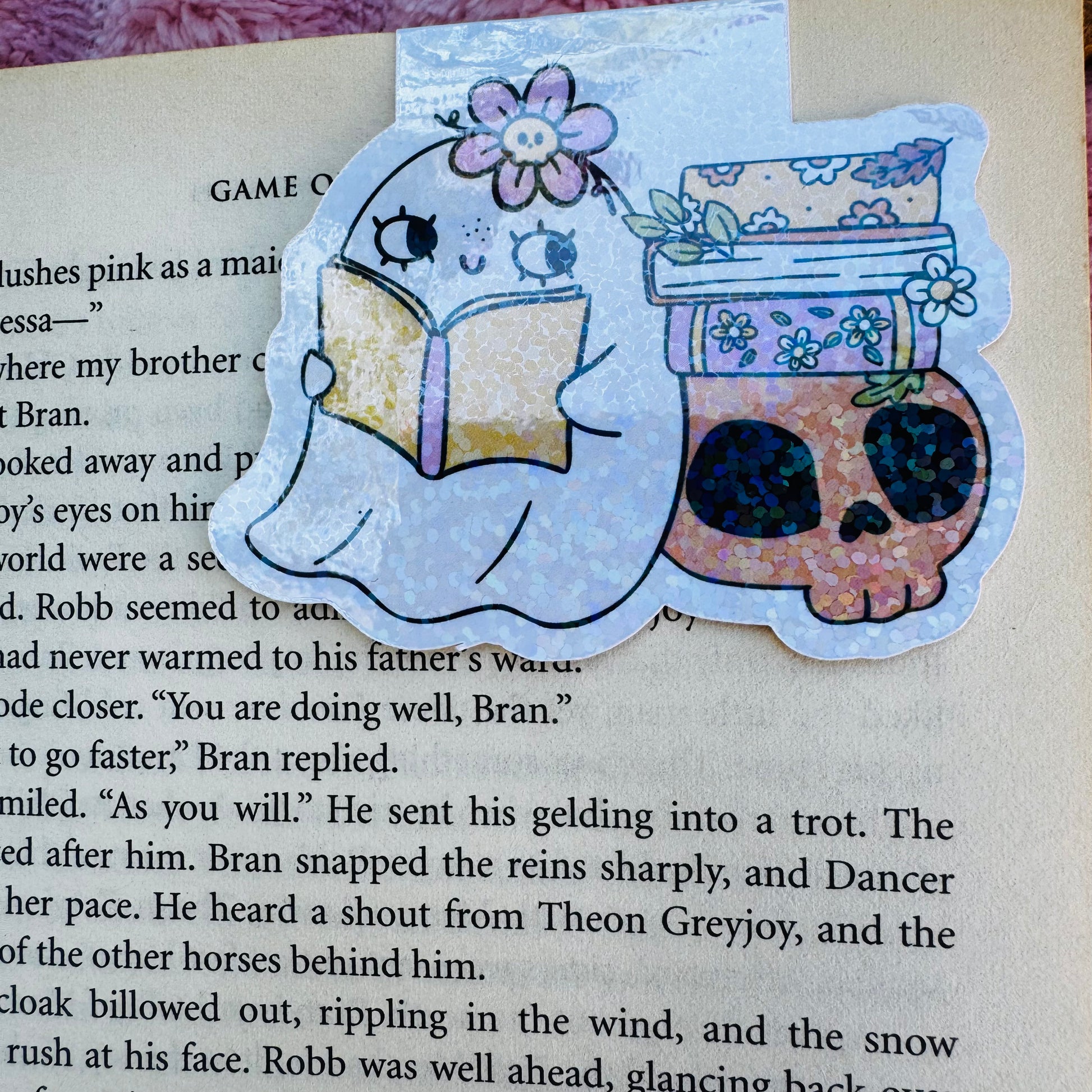 Spooky Cute Boo Girly Reading Book Cozy Vibes Magnetic bookmark for book lovers