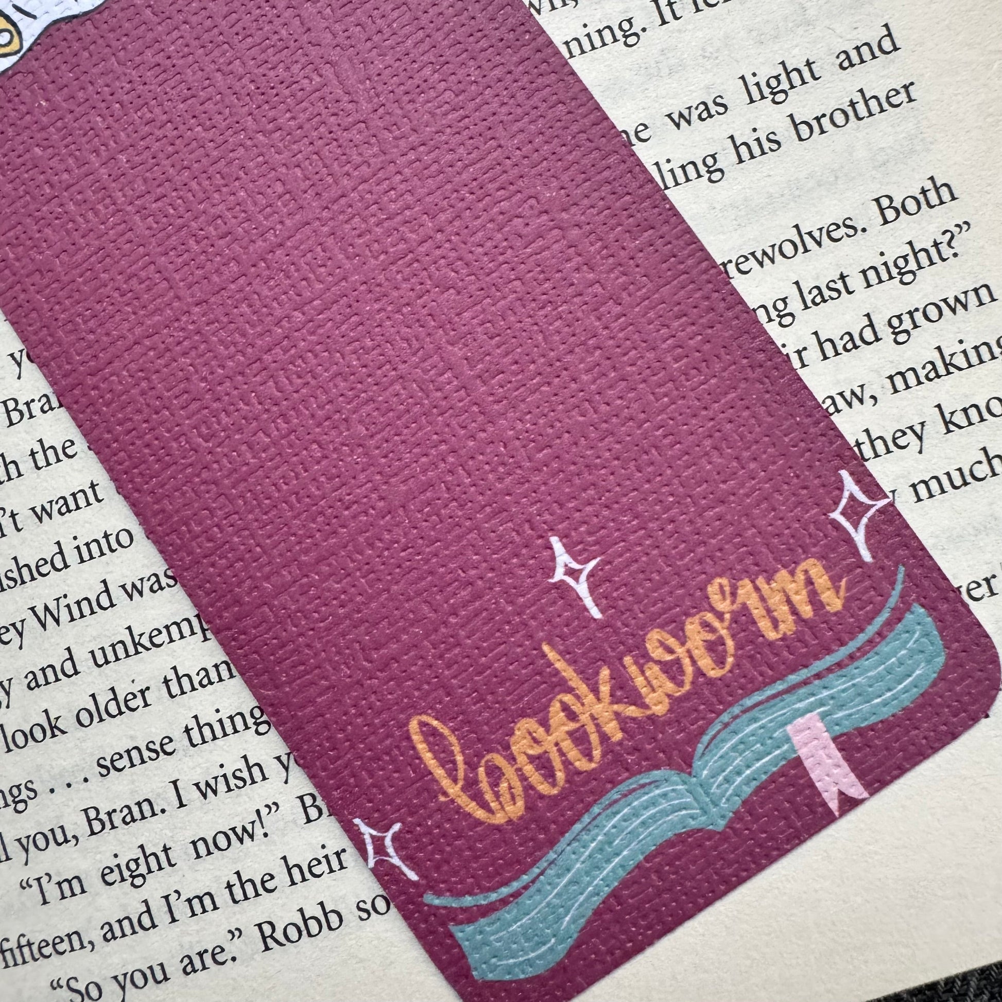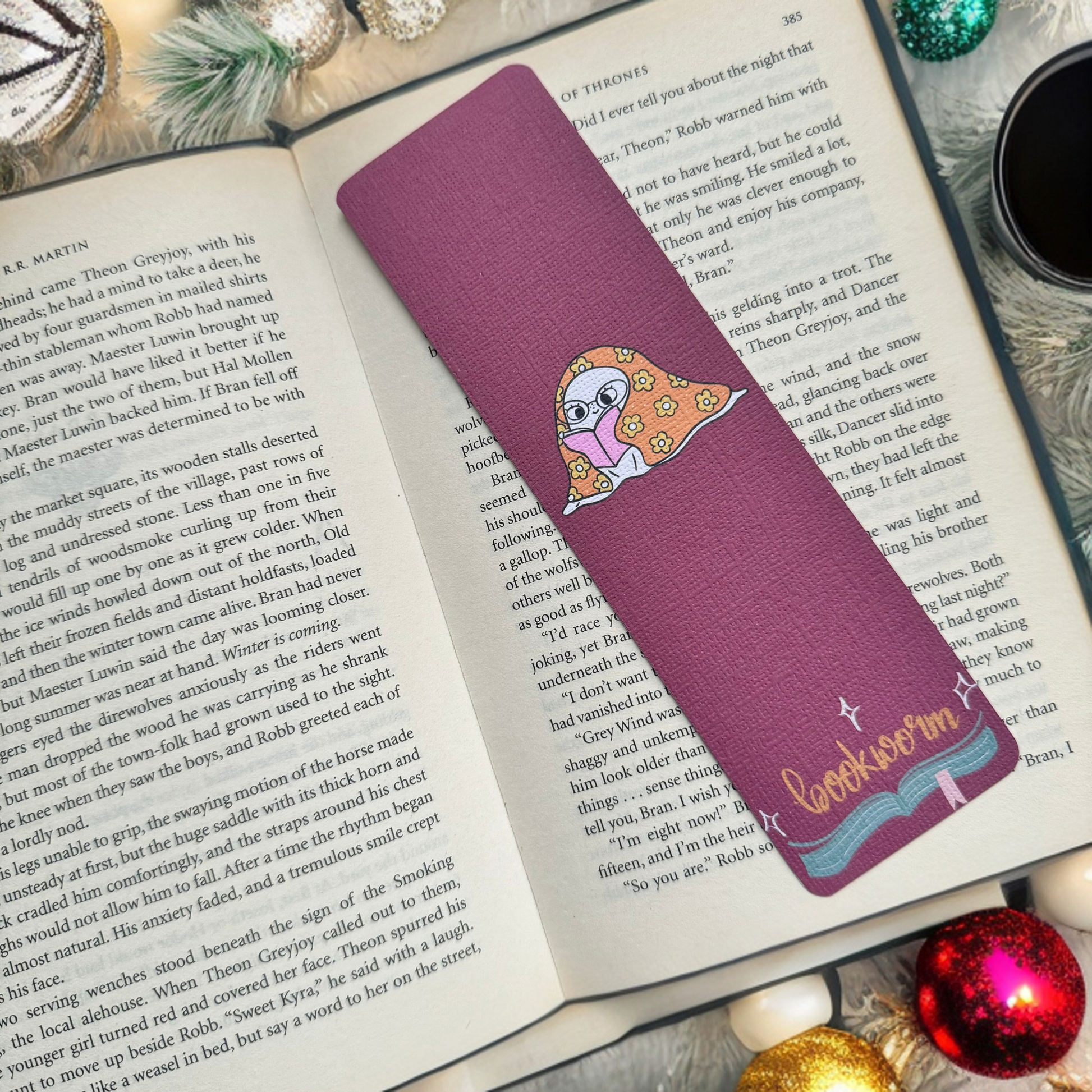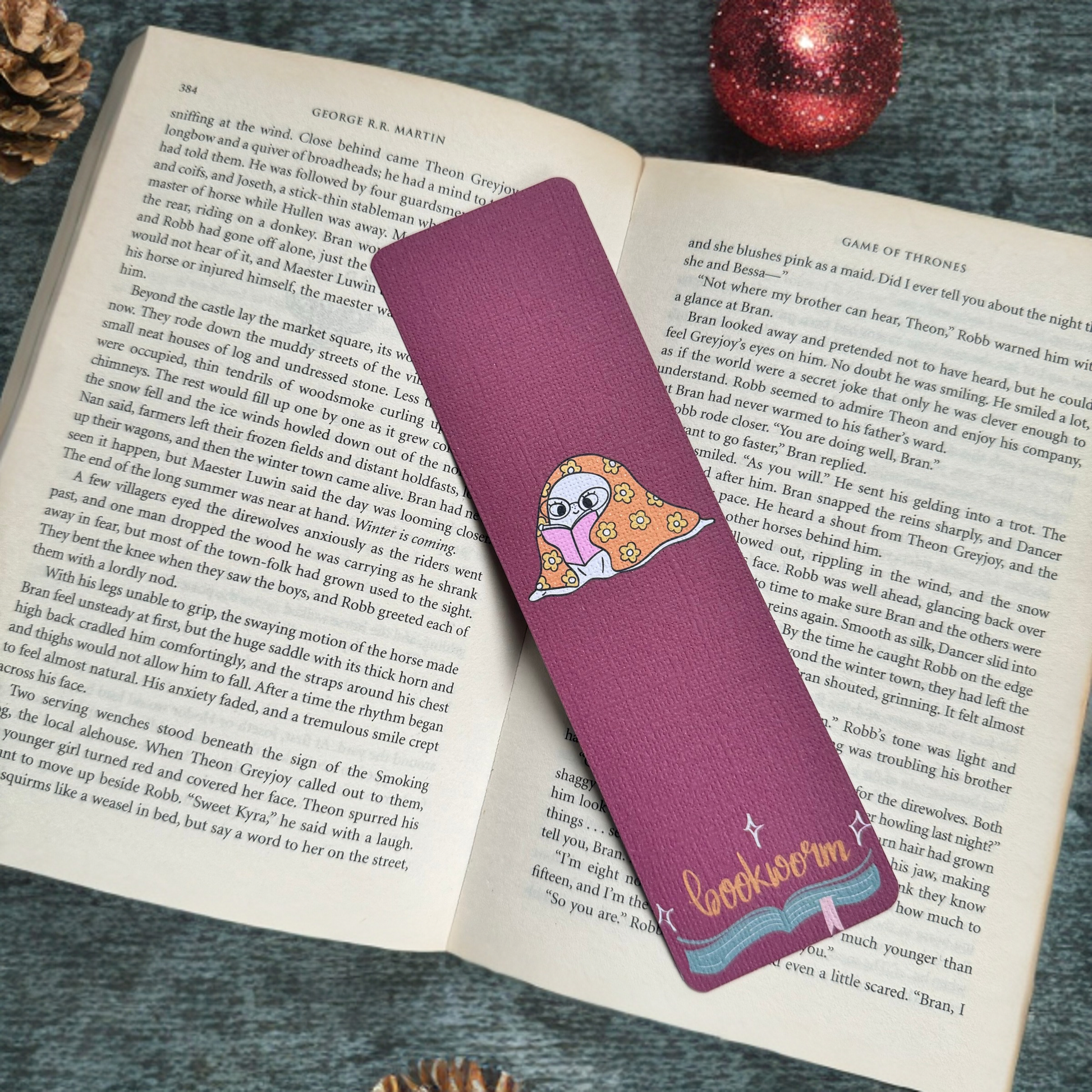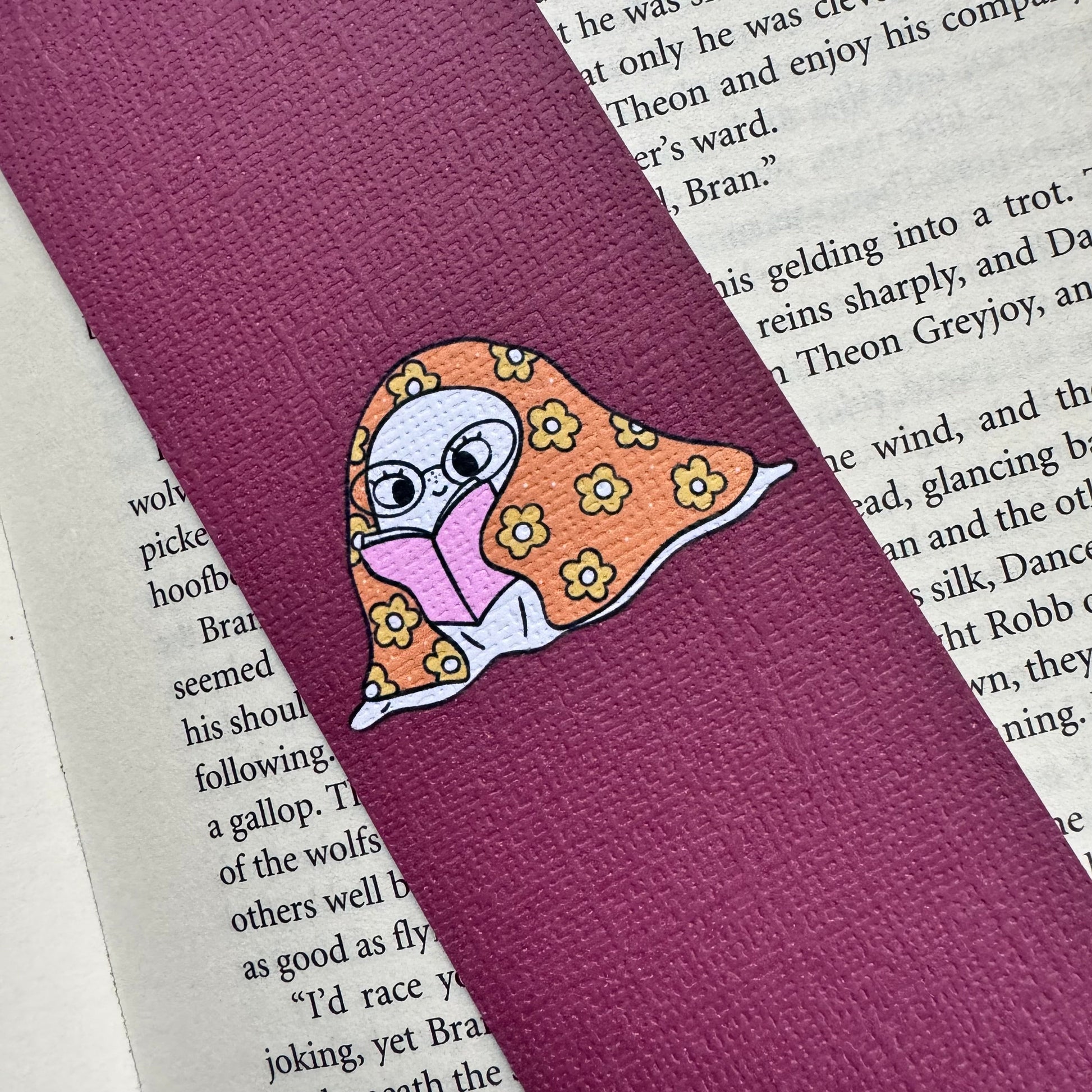 Winter Ghostie Bookworm linen bookmark, Holiday Cozy Read bookmark